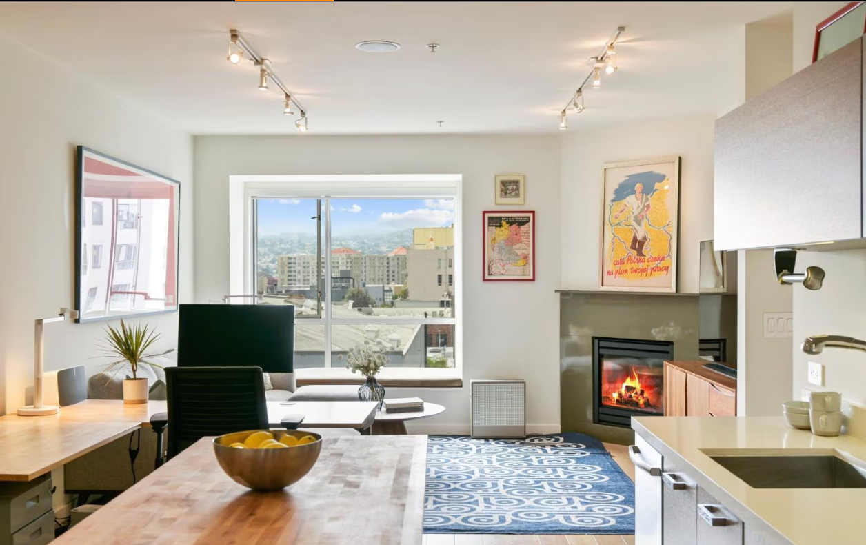 Views, Location, Parking! Stunning western views, an open living and dining space with gas fireplace, a SOZO Design kitchen with Liebherr refrigerator & Bertazzoni range, and an oversized bathroom with skylight make this home feel special. You'll love the wide-plank oak flooring, generous ceiling height, and the juliet balcony off the bedroom for taking in the sunsets. Amenities include in-unit laundry and storage closet, closet shelving systems, a lush & tranquil shared garden and patio area, deeded 1-car garaged parking, a bicycle room, elevator, in-unit tele-monitor intercom and security system, and solar panels that provide electricity for the HOA. The central location is a block from tech shuttle stops, public transportation, Uber, X, and is a short jaunt to Union Square or Hayes Valley. And South of Market offers world-class arts, entertainment, bars, and restaurants! Fast and easy access to freeways. This is an ideal living oasis near your work, 1031 exchange property, or City pied-a-terre. Don't miss this opportunity!